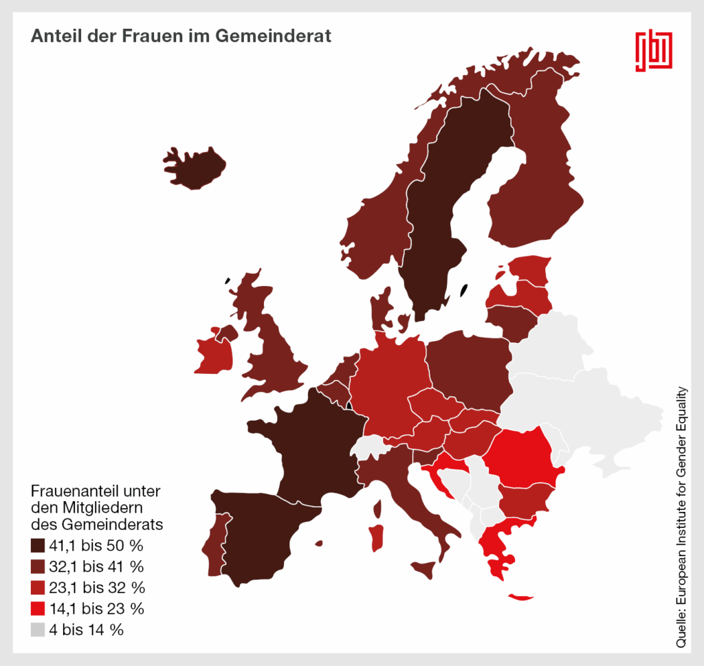 - European Institute für Gender Equality (2023). Local/municipal councils: mayors or other leaders and members. Online unter: https://eige.europa.eu/gender-statistics/dgs/indicator/wmidm_pol_parl__wmid_locpol/bar/year:2023/geo:EU28,EU27_2020,IPA,EEA,BE,BG,CZ,DK,DE,EE,IE,EL,ES,FR,HR,IT,CY,LV,LT,LU,HU,MT,NL,AT,PL,PT,RO,SI,SK,FI,SE,IS,LI,NO,UK,ME,MK,AL,RS,TR,BA,XK/sex:M,W/UNIT:PC/POSITION:PRES_CNCL/EGROUP:MUNICIP